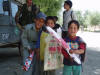 would stop and give away kites flags, toys, pencils, paper and anything else